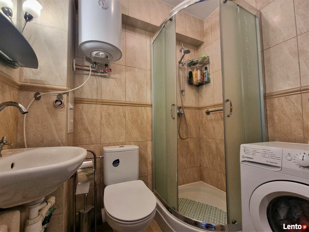 łazienka z WC wyposażona w kabinę prysznicową, bojler elektryczny na ciepłą wodę, pralka